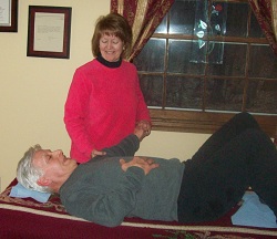 When the head is balanced on top of the spine anti-gravity muscles respond by lengthening and widening the body in an upward direction. When the spine is elongated and the torso expanded movement becomes light and springy. Too much tension causes the feeling of effort but, once removed, feels effortless. Fred Astaire and Artur Rubinstein are both perfect examples of good use. Excess tension or emotional stress cause the head to be thrown off balance, the torso to be narrowed, and the spine compressed. Our shoulders become permanently hunched, our necks become stiff and we sit either slumped or holding ourselves in a very rigid fashion. We are unconscious of our habitual holding patterns and are unaware of the harmful effects on our health both physically and mentally. The Alexander Technique is a mind/body integration. Once you begin to let go of harmful tension the mind quiets down and the senses become more acute, just as in childhood. You are free to take in the environment because you are more conscious and aware. Through lessons you will learn to recognize areas of tension and be taught a new way of thinking that will simultaneous prevent the old habits and restore the body to its natural coordinated state. Through various activities including chair work and lying on a table, the teacher's hands transmit information to the student that restores integration and coordination of the mind/body relationship. The student then has the experience of freedom that goes with this new use, and is given the tools to change his old behavior into a new and improved "Use of the Self." |